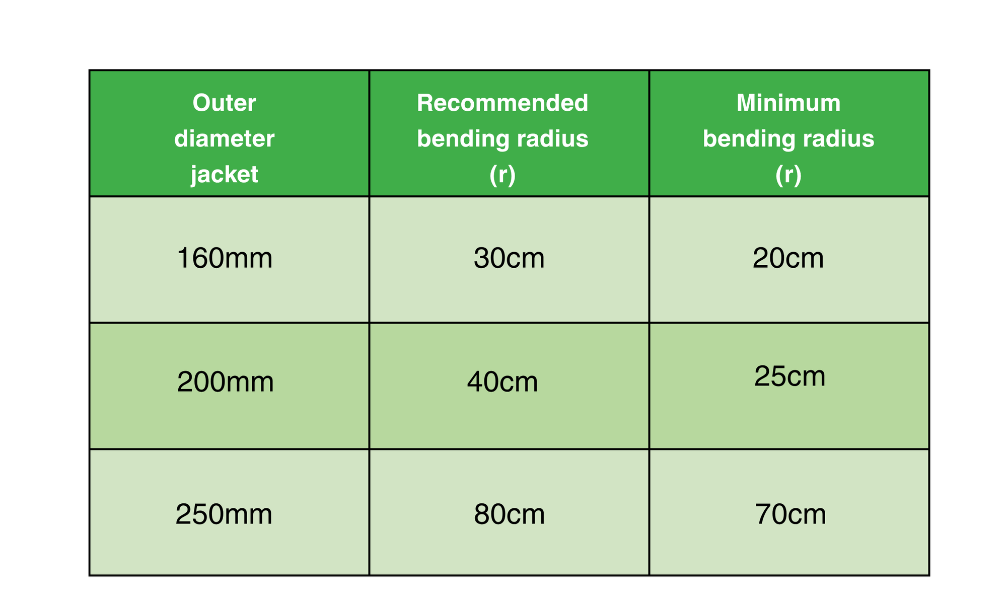 Minimum bending radii