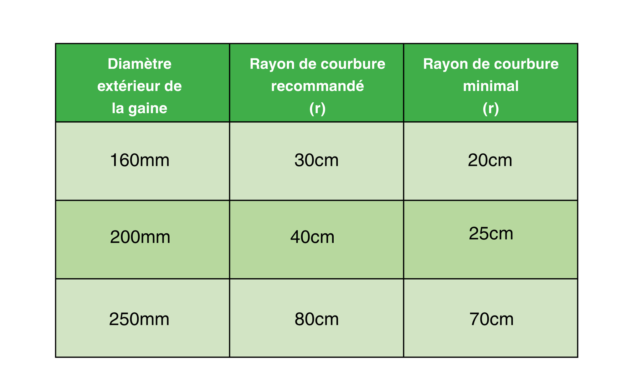 Rayons de courbure minimaux